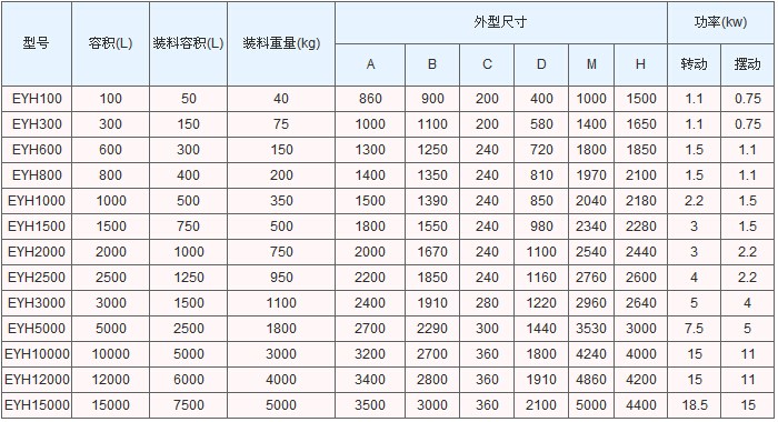 有EYH系列二维运动混合机的详细技术参数吗?